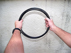2) Press the rolled cable forming a circle, open the two Velcro pieces and unroll the loop coaxial cable forming a circle.