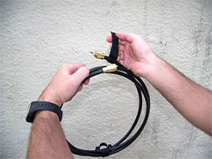 4) Engage with moderate pressure the coaxial loop fixing ring above the small loop. Keep the flated tube extreme facing the coaxial cable.