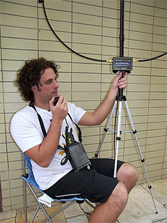 The above pictures shows the best way to operate the AlexLoop antenna with the operator comfortable seated on a camping chair with one hand finger at the tuning knob and the other hand navigating on the radio controls.